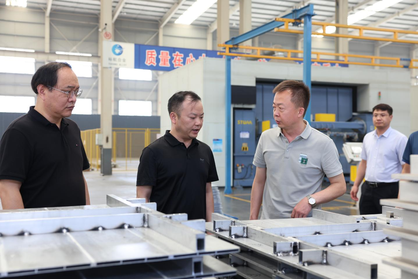 在裕航合金高端鋁精深加工產(chǎn)業(yè)基地,考察團(tuán)實(shí)地參觀了裕航合金鋁精深加工生產(chǎn)車間及產(chǎn)品展廳,詳細(xì)了解企業(yè)在鋁精深加工領(lǐng)域的技術(shù)創(chuàng)新、產(chǎn)品研發(fā)、生產(chǎn)流程以及市場應(yīng)用等方面情況。