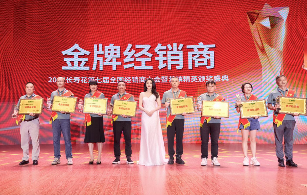 頒獎(jiǎng)盛典上,長(zhǎng)壽花食用油代言人高圓圓為金牌經(jīng)銷(xiāo)商和鉆石經(jīng)銷(xiāo)商頒獎(jiǎng),并現(xiàn)場(chǎng)溫馨互動(dòng)。