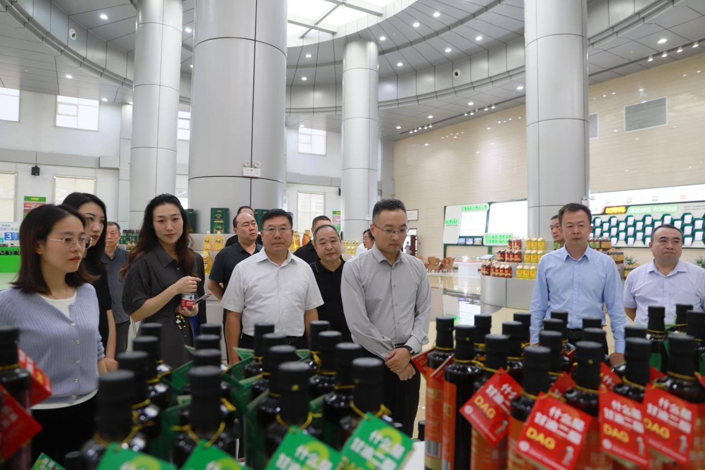 在長壽花綠色產(chǎn)業(yè)基地,來訪領導實地參觀了長壽花產(chǎn)品展廳及全自動灌裝包裝生產(chǎn)車間,認真聽取了企業(yè)發(fā)展布局、多元化產(chǎn)品矩陣、科技創(chuàng)新成果轉(zhuǎn)化等情況介紹,與企業(yè)領導就科創(chuàng)賦能高端健康糧油行業(yè)發(fā)展等內(nèi)容進行了深入交流。