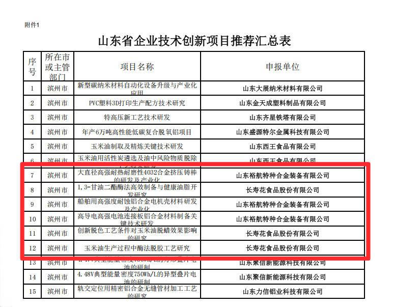 近日,山東省工業(yè)和信息化廳公布2025年山東省企業(yè)技術創(chuàng)新項目計劃(第一批),憑借深厚的技術積累與創(chuàng)新實力,山東三星集團旗下長壽花食品、裕航合金共六個項目成功入選,為企業(yè)創(chuàng)新發(fā)展注入強勁動能。