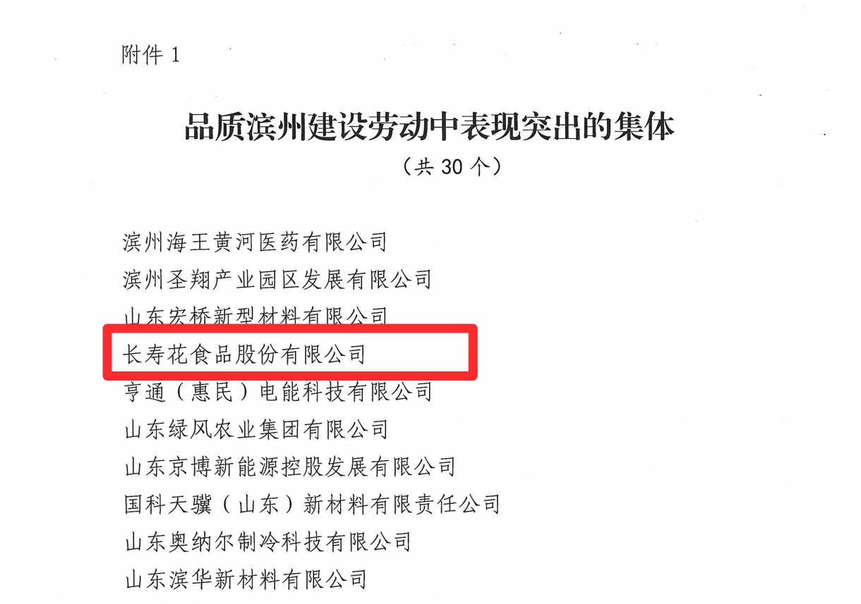 近日,濱州市總工會發(fā)布了《關于表揚在品質(zhì)濱州建設勞動中表現(xiàn)突出的集體和個人的通報》,對在推動“品質(zhì)濱州”建設中勇挑重擔、創(chuàng)新實干的先進集體和個人予以通報表彰。長壽花食品憑借在品質(zhì)濱州建設中的卓越表現(xiàn)和突出貢獻,榮獲“品質(zhì)濱州建設勞動中表現(xiàn)突出的集體”榮譽表彰。