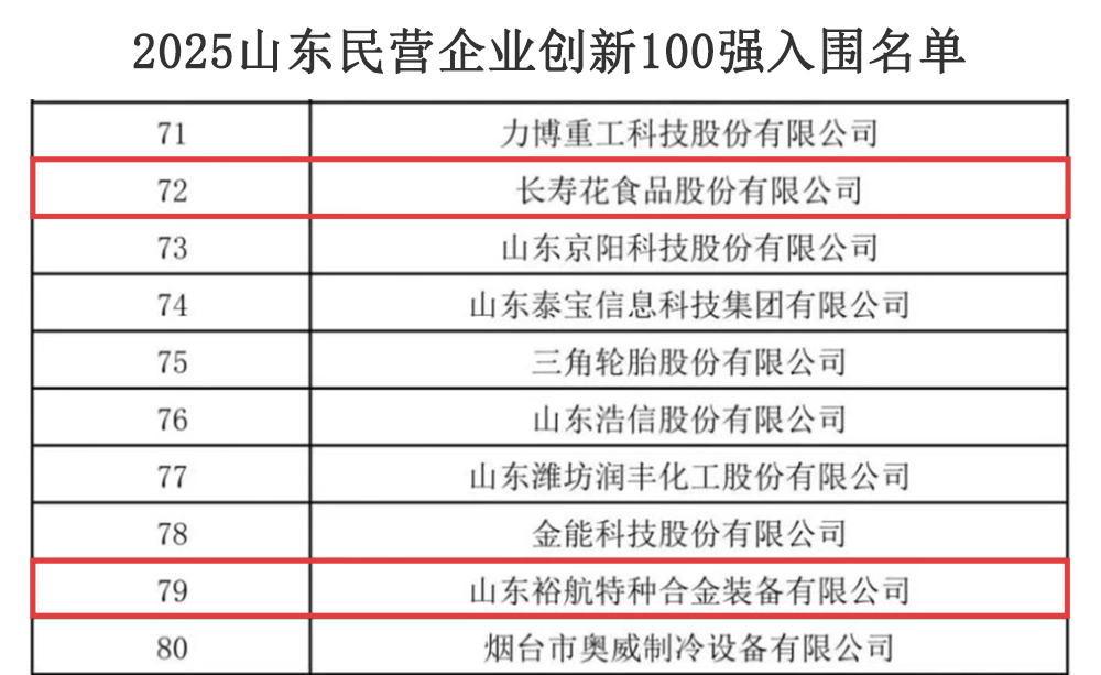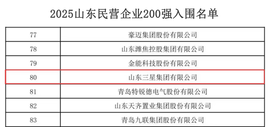 近日,山東省工商聯(lián)發(fā)布2025山東民營(yíng)企業(yè)百強(qiáng)系列榜單入圍名單,山東三星集團(tuán)上榜山東民營(yíng)企業(yè)200強(qiáng),位列第80位,較去年位次提升12位。集團(tuán)旗下長(zhǎng)壽花食品、裕航合金公司同時(shí)上榜山東民營(yíng)企業(yè)創(chuàng)新100強(qiáng),連續(xù)上榜民企百強(qiáng)榜單彰顯了企業(yè)在綜合實(shí)力、科創(chuàng)能力及發(fā)展?jié)摿Φ确矫娴膹?qiáng)勁韌性和勢(shì)頭。