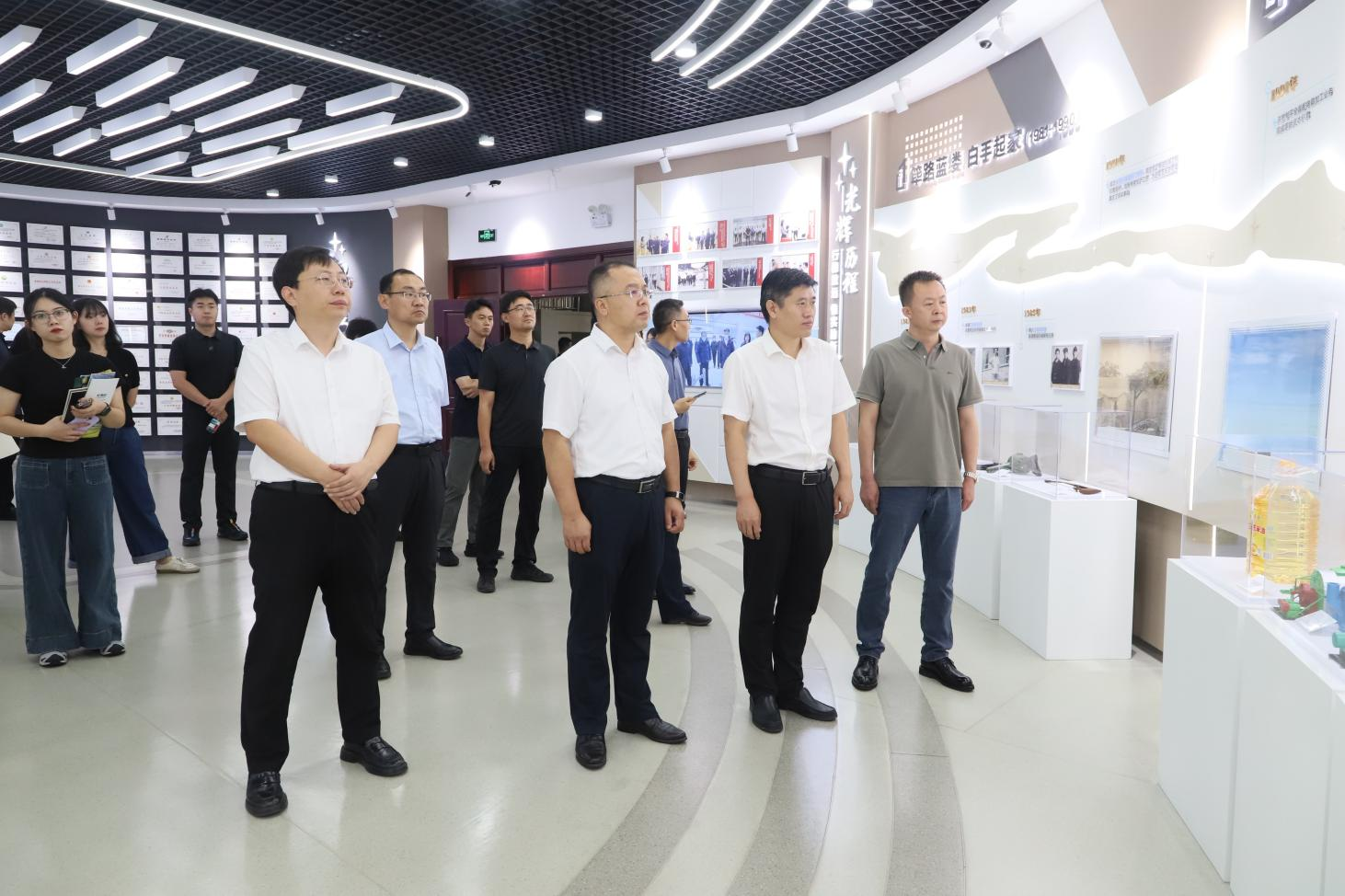 在集團文化中心,調(diào)研領(lǐng)導(dǎo)實地參觀了企業(yè)發(fā)展歷程、主導(dǎo)產(chǎn)業(yè)及黨建文化展區(qū),認真聽取了企業(yè)提煉黨建工作理念、熔鑄特色黨建品牌、打造黨建文化陣地的情況介紹,真切感受到企業(yè)“焊條黨建”品牌和“五融雙強”工作體系的強大紅色內(nèi)核。