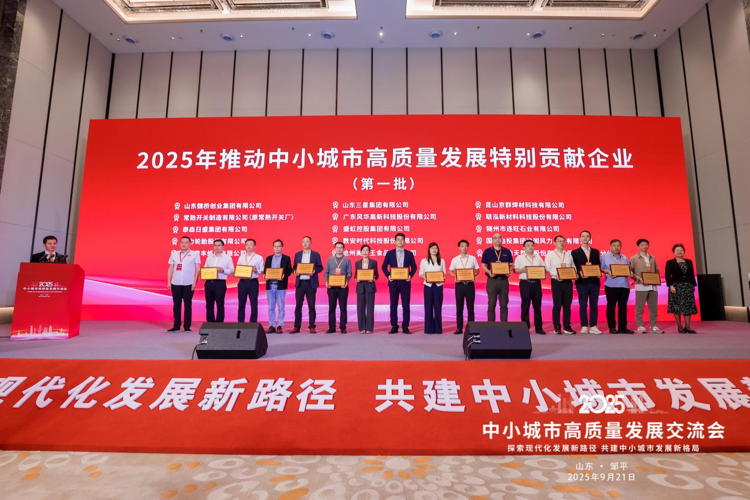 9月20日—21日,2025中小城市高質(zhì)量發(fā)展交流會(huì)在山東鄒平舉行,本屆交流會(huì)以“探索現(xiàn)代化發(fā)展新路徑 共建中小城市發(fā)展新格局”為主題,來(lái)自全國(guó)各地的百?gòu)?qiáng)縣區(qū)、千強(qiáng)鎮(zhèn)代表以及知名專(zhuān)家學(xué)者和企業(yè)家代表齊聚一堂,共同探討中小城市高質(zhì)量發(fā)展之路。山東三星集團(tuán)作為優(yōu)秀企業(yè)代表,應(yīng)邀參會(huì)并作交流發(fā)言。