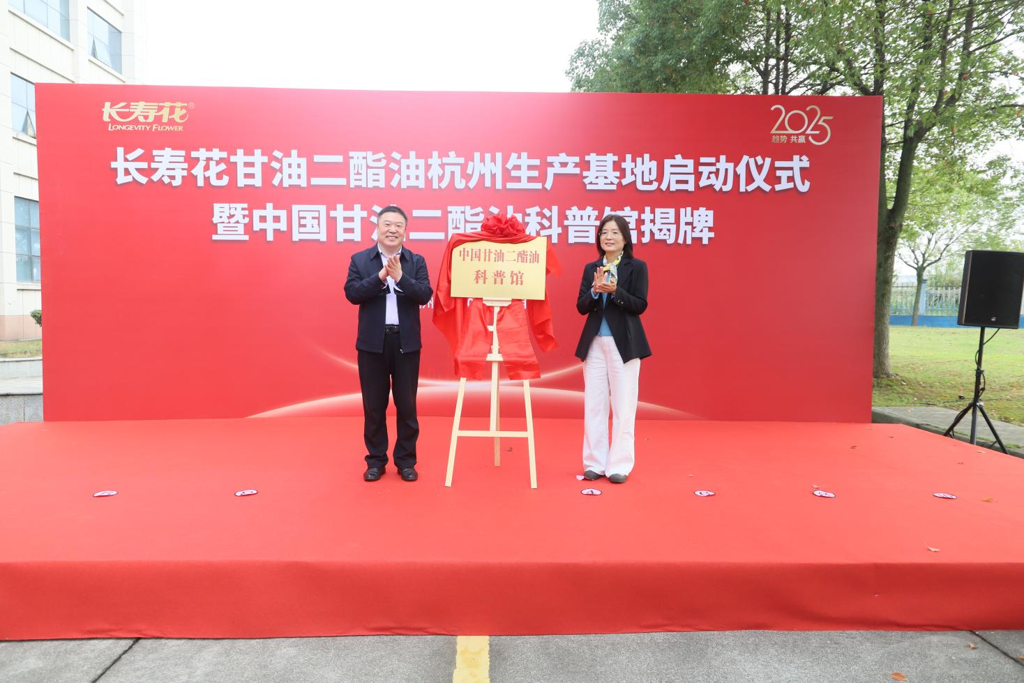 儀式上,桐廬縣商務(wù)局黨委委員、副局長閆娟與長壽花食品副總經(jīng)理、營銷總監(jiān)任在順為中國甘油二酯油科普館隆重揭牌。