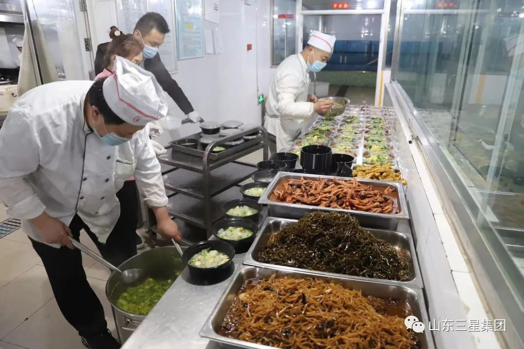 11月下旬,鄒平疫情散發(fā),山東三星集團(tuán)總部150余名干部員工緊急趕赴公司,開(kāi)啟24小時(shí)駐廠模式。此時(shí)此刻,穩(wěn)產(chǎn)保供是重中之重,保障駐廠人員的三餐供應(yīng)也是首要任務(wù)。趙龍帶領(lǐng)團(tuán)隊(duì)快速盤(pán)點(diǎn)儲(chǔ)存食材,聯(lián)絡(luò)供貨渠道,做好細(xì)致分工責(zé)任落實(shí)……一切工作按部就班開(kāi)展起來(lái),150名干部員工也過(guò)上了“早餐蛋奶充足 午晚餐葷素管夠”的駐廠生活。