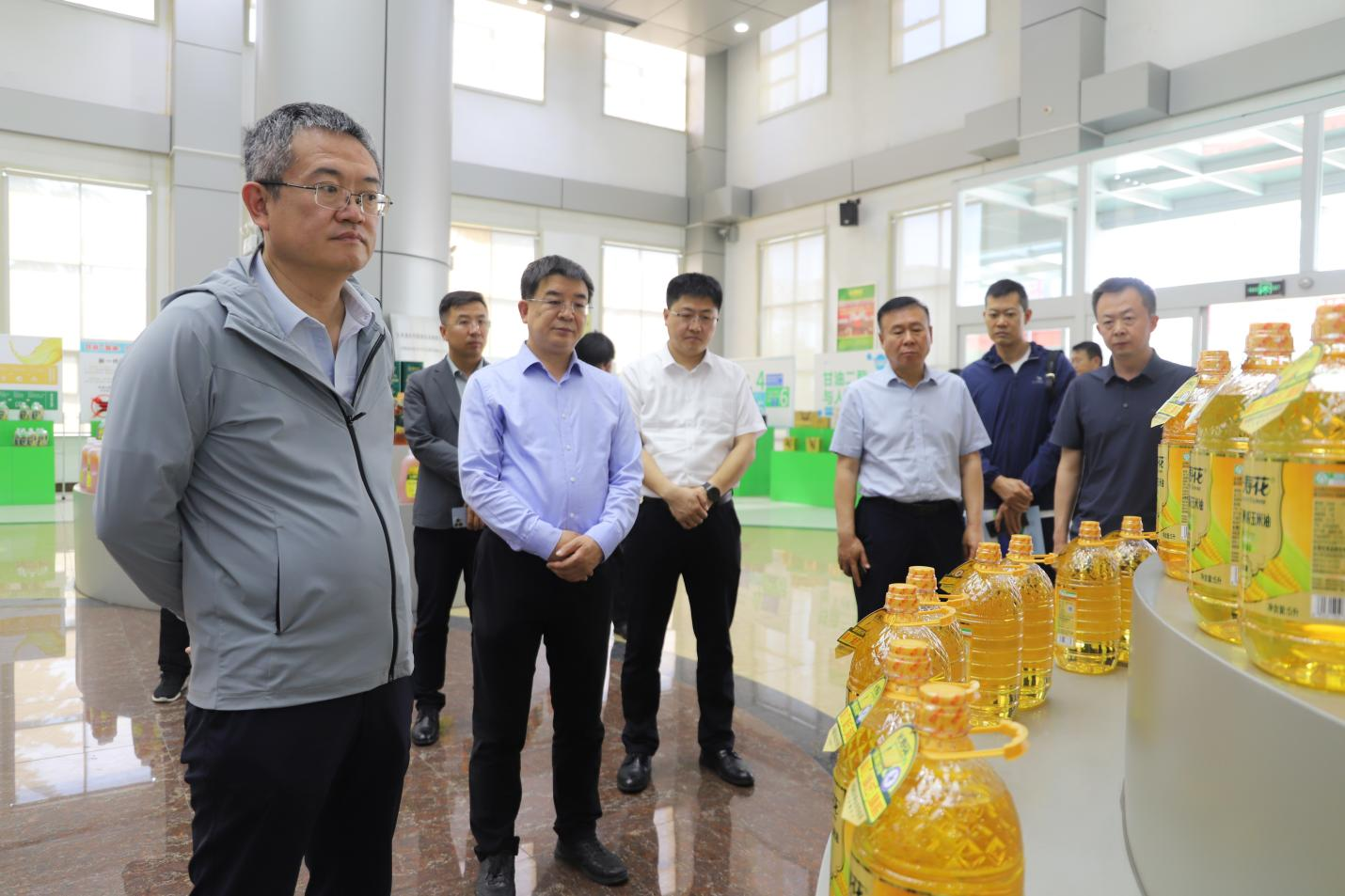 考察領(lǐng)導(dǎo)到長壽花綠色生產(chǎn)基地參觀考察并進行座談交流。郭濤一行認真聽取企業(yè)產(chǎn)業(yè)布局、糧油產(chǎn)業(yè)鏈構(gòu)建、技術(shù)研發(fā)及市場拓展等內(nèi)容介紹,詳細了解了玉米精深加工新技術(shù)運用和產(chǎn)業(yè)鏈延伸、新質(zhì)生產(chǎn)力培育等情況,并重點就糧油產(chǎn)業(yè)創(chuàng)新發(fā)展、品牌運營建設(shè)推廣等方面與企業(yè)負責(zé)人進行了交流探討。