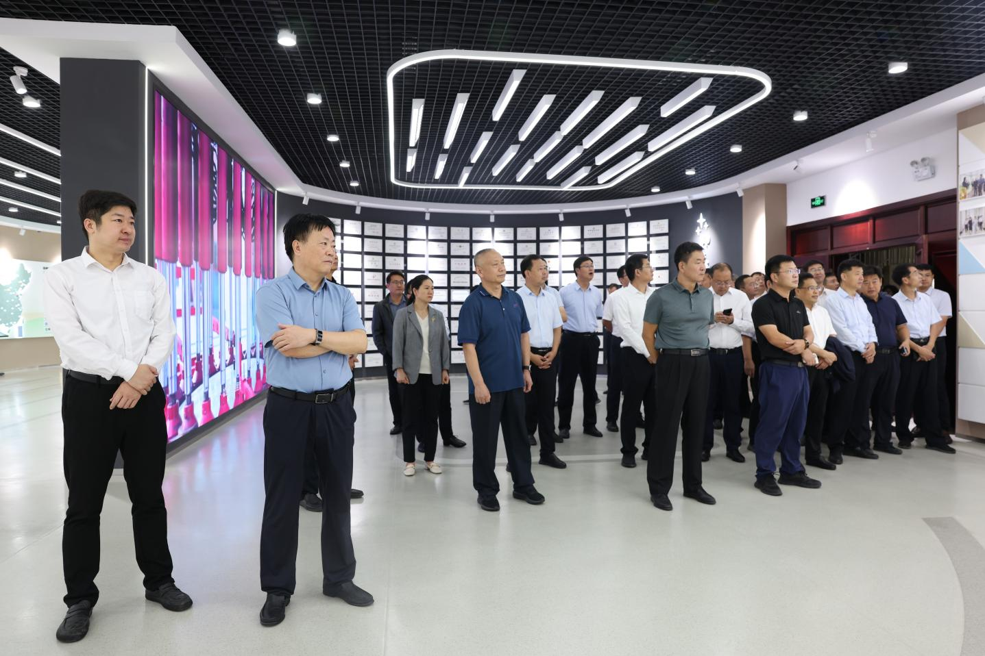 在集團文化中心,觀摩領導詳細了解企業(yè)發(fā)展歷程、產業(yè)優(yōu)化升級以及在技術研發(fā)、產品創(chuàng)新等方面所取得的顯著成果,對山東三星集團堅持科技創(chuàng)新為核心驅動,推動高端糧油產業(yè)化發(fā)展、鋁精深加工產業(yè)升級轉型給予高度評價,對企業(yè)“焊條”黨建及企業(yè)文化建設表示高度贊賞。