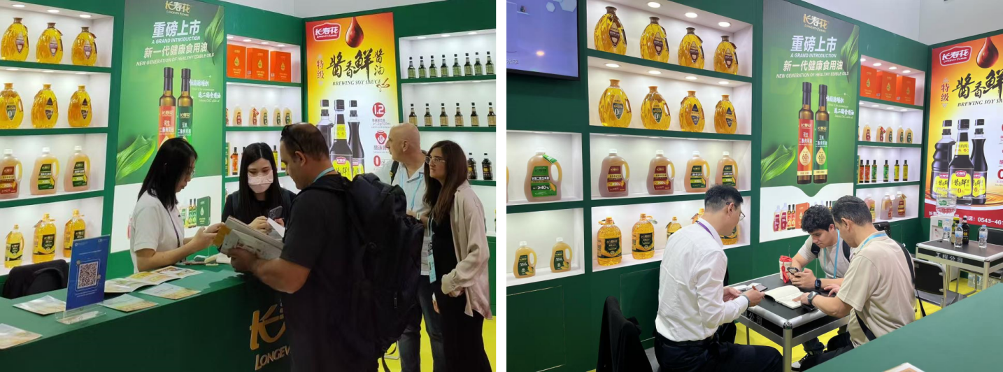 作為廣交會的“老朋友”,長壽花食品已連續(xù)多年參展廣交會。此次廣州之行,長壽花食品攜旗下甘油二酯系列食用油、金胚玉米油、零反式脂肪高養(yǎng)玉米油、濃香玉米油以及長壽花系列調(diào)味品等高端特色產(chǎn)品精彩亮相,吸引了眾多國內(nèi)外展商的駐足問詢和交流洽談。