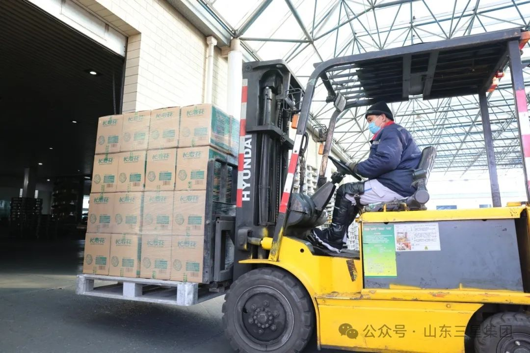 》》在長(zhǎng)壽花食品倉(cāng)儲(chǔ)車間,叉車來回穿梭,緊鑼密鼓為客戶備貨。