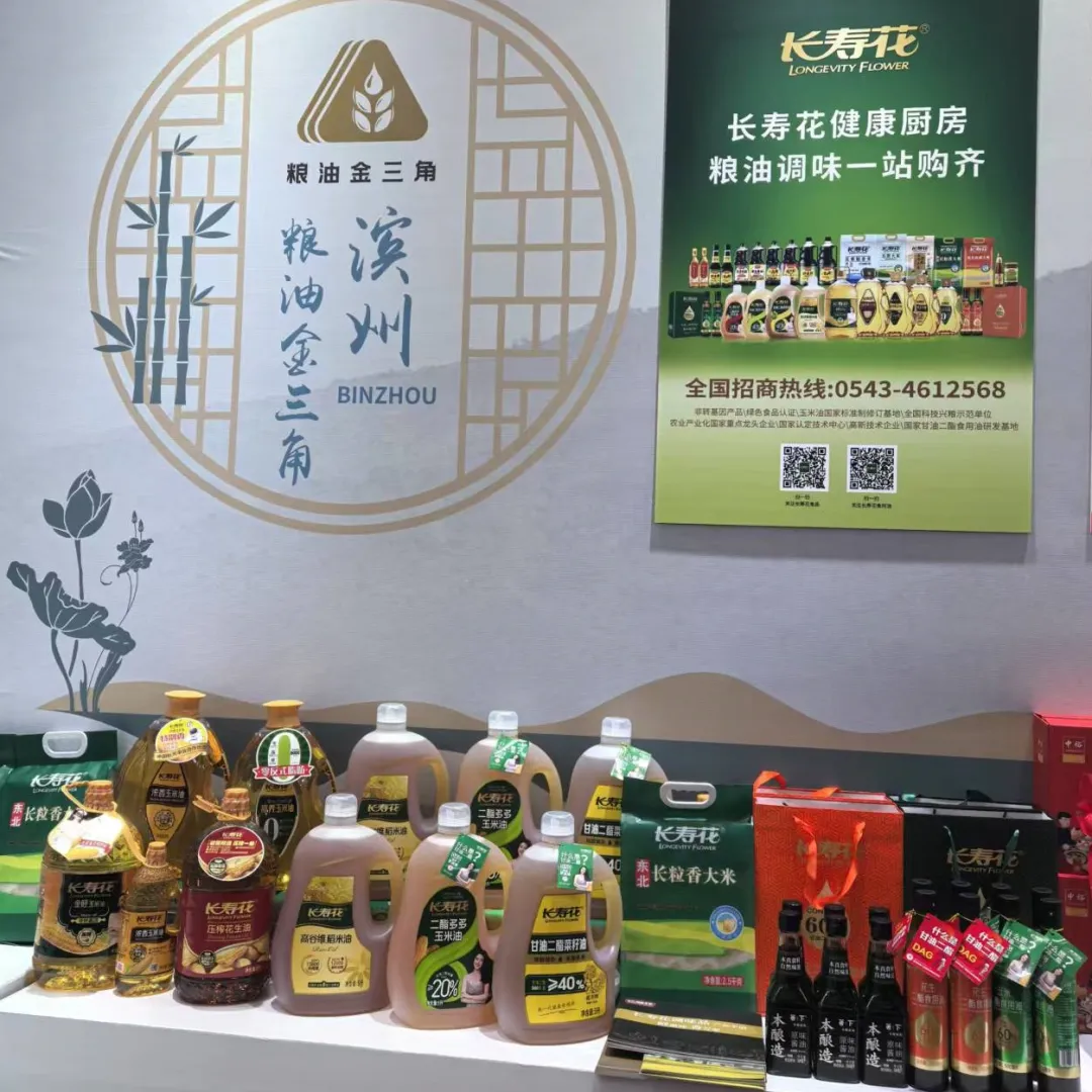 長(zhǎng)壽花食品展臺(tái)前,由長(zhǎng)壽花二酯食用油、金胚玉米油、高谷維稻米油、濃香玉米油及調(diào)味品、糧食產(chǎn)品等構(gòu)成的綠色健康健康廚房展區(qū)吸引了眾多參展人員駐足咨詢。