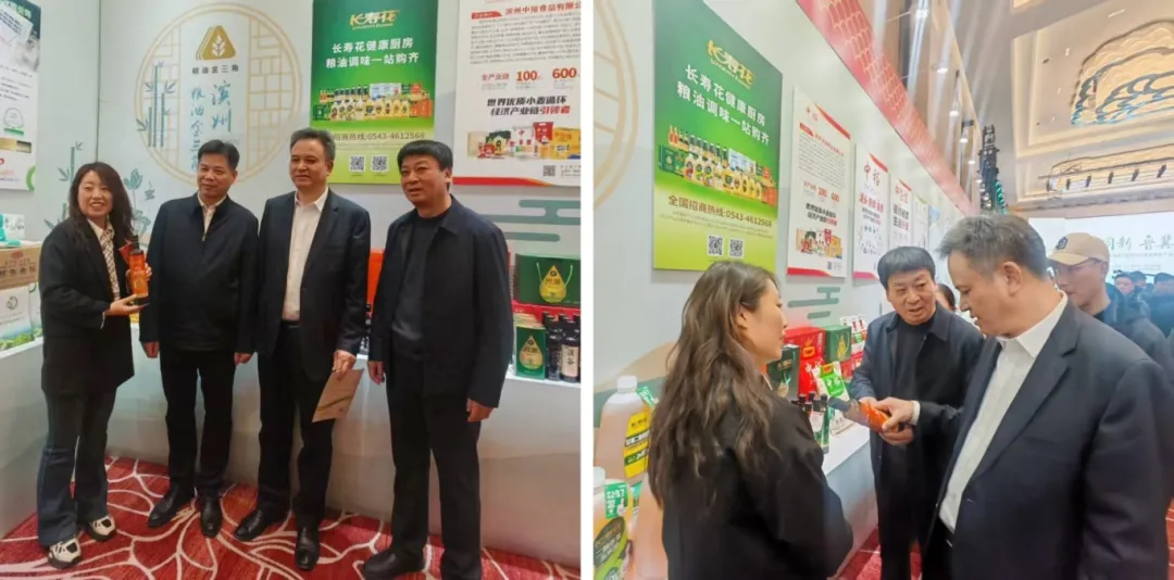 期間,濱州市糧食和物資儲(chǔ)備局黨組書記、局長(zhǎng)藺兵川等與會(huì)領(lǐng)導(dǎo)蒞臨長(zhǎng)壽花食品展區(qū),重點(diǎn)了解了長(zhǎng)壽花食品在健康食品領(lǐng)域的工藝突破和產(chǎn)品創(chuàng)新,尤其是歷經(jīng)六年創(chuàng)新研發(fā)推出的新一代健康油——甘油二酯食用油,憑借其領(lǐng)先的健康理念和獨(dú)特的健康屬性贏得在場(chǎng)領(lǐng)導(dǎo)的廣泛好評(píng)和肯定。