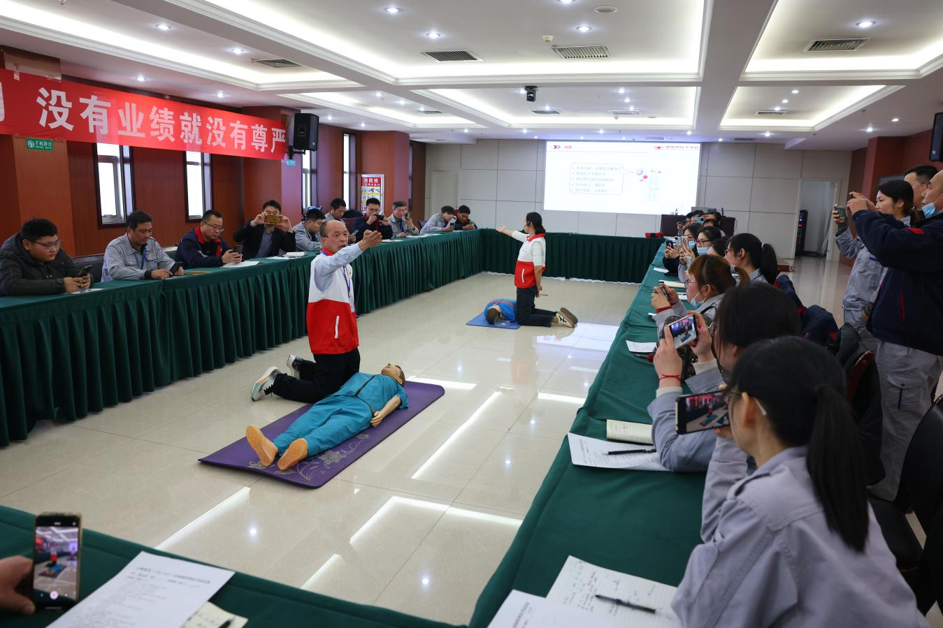 培訓(xùn)中,老師通過淺顯易懂的語言、真實生動的案例,詳細(xì)講解了心肺復(fù)蘇、氣道異物梗阻等常見急癥的處理辦法,并采用理論知識講解和現(xiàn)場演示相結(jié)合的方式,利用模擬人演示具體急救技巧,手把手指導(dǎo)學(xué)員進行實踐操作。培訓(xùn)現(xiàn)場氣氛熱烈,職工們認(rèn)真聽講,踴躍進行實操練習(xí)。