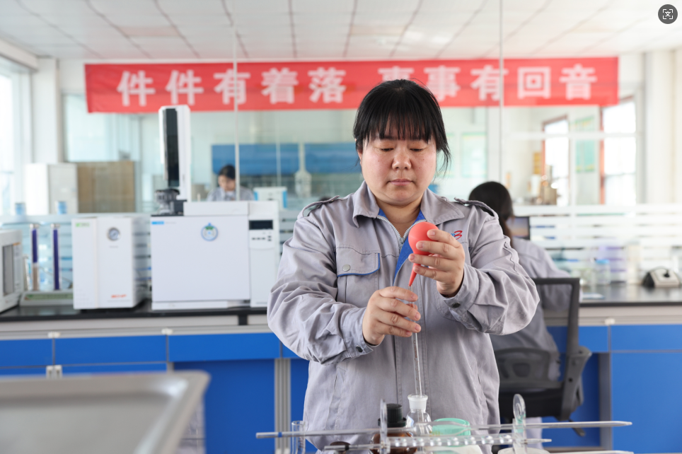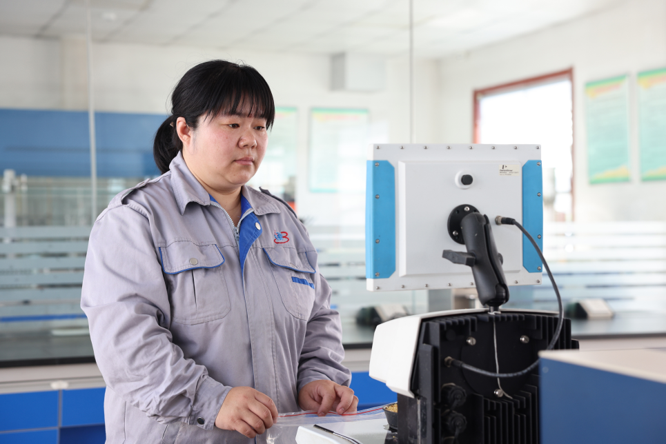 每天清晨,白宗英總是最早到達(dá)質(zhì)檢科室,準(zhǔn)備好一天的檢測(cè)工具與記錄表格。對(duì)于玉米胚芽的質(zhì)檢,她如同一位嚴(yán)苛的“選美評(píng)委”。檢測(cè)臺(tái)上,她熟練操作設(shè)備儀器,精準(zhǔn)獲取玉米胚芽中的水分含量、含油率等指標(biāo)數(shù)據(jù),通過(guò)專業(yè)的萃取與計(jì)算,確保每一批次的玉米胚芽都能為優(yōu)質(zhì)油品的產(chǎn)出奠定基礎(chǔ)。