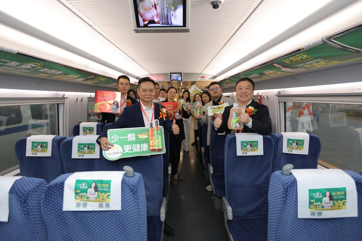 在熱烈的掌聲中,與會(huì)領(lǐng)導(dǎo)嘉賓共同為列車首發(fā)剪彩。這場(chǎng)獨(dú)具匠心的儀式,一端是長壽花食品帶來的健康新選擇——甘油二酯食用油,以創(chuàng)新科技重新定義健康飲食;另一端則是中國高鐵,以世界矚目的“中國速度”展現(xiàn)國家工業(yè)實(shí)力。當(dāng)健康飲食的“科技力”遇上中國制造的“硬實(shí)力”,這不僅是一次品牌跨界,更是創(chuàng)新科技與國家戰(zhàn)略的深度融合,健康中國戰(zhàn)略正搭載新時(shí)代發(fā)展快車,全速駛向未來。