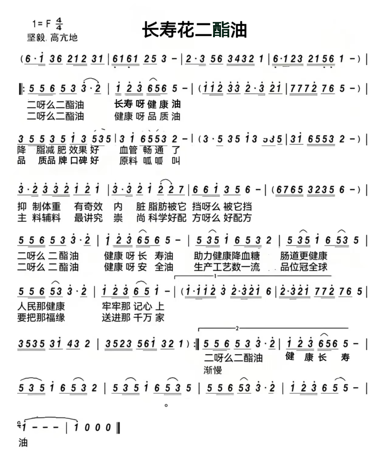 “二呀么二酯油,長(zhǎng)壽呀健康油……”,這是長(zhǎng)壽花桐廬公司近日剛剛收到的來(lái)自客戶(hù)創(chuàng)作的歌曲《長(zhǎng)壽花二酯油》,無(wú)論是堅(jiān)毅高亢的旋律,還是真情實(shí)感的歌詞,展現(xiàn)出的是創(chuàng)作者對(duì)長(zhǎng)壽花品牌的認(rèn)可信任和對(duì)“二酯油”產(chǎn)品發(fā)自?xún)?nèi)心的喜愛(ài)。