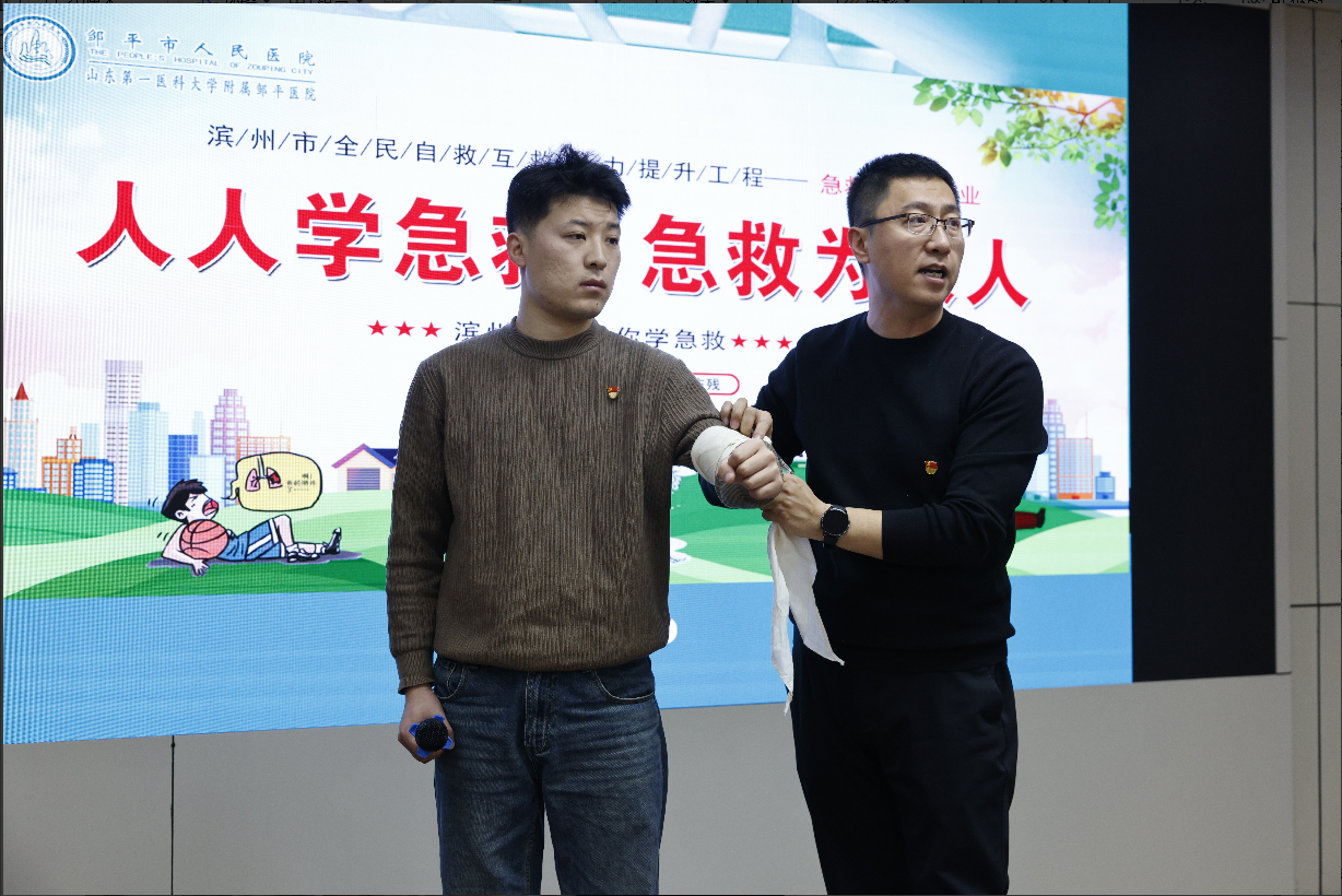 為切實增強職工應急救護意識,提升應對突發(fā)情況和意外傷害的自救互救能力,12月23日,鄒平市人民醫(yī)院志愿護理服務隊走進山東三星集團,開展“人人學急救、急救為人人”急救科普進企業(yè)活動,集團應急管理部及各分公司應急管理相關(guān)人員七十余人參加培訓。